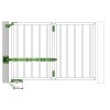 Sestava komponentů pro křídlovou bránu s dvoudílným sklápěcím křídlem, které umožňuje úplné otevření o 180° a zvětšení průchozího prostoru.