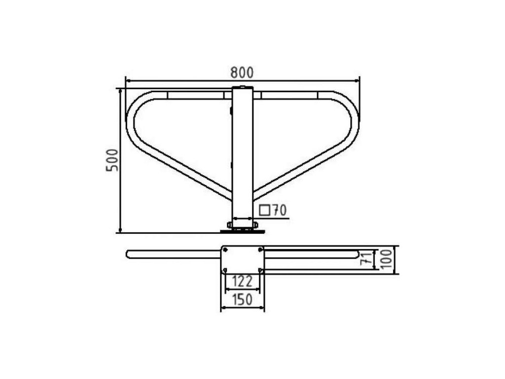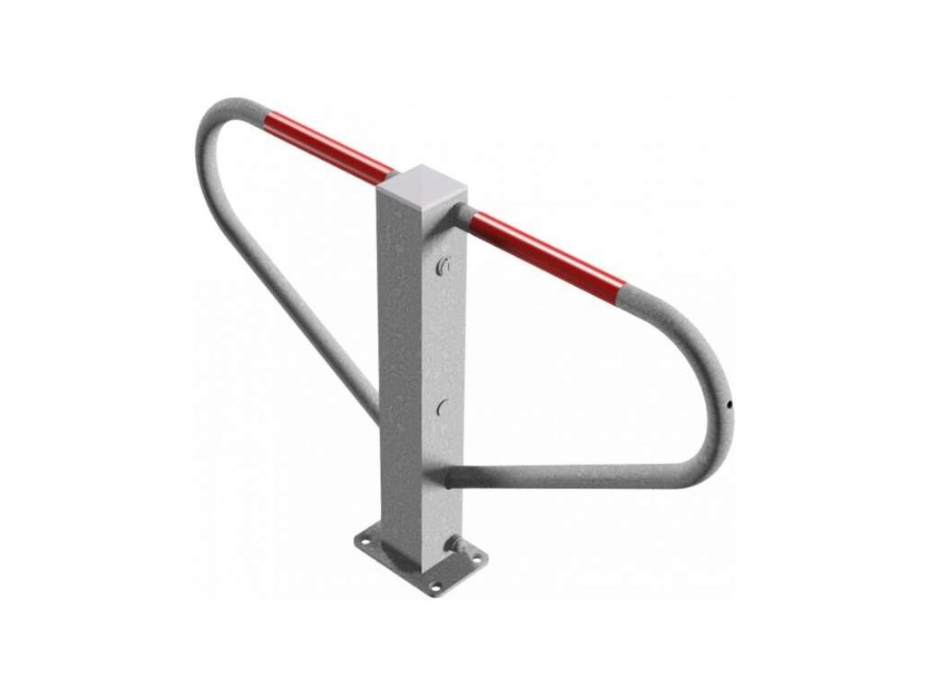 Parkovací zábrana typu motýlek je vyrobena ze čtvercového profilu 70 x 70 mm s bočními kruhovými trubkovými obručemi.