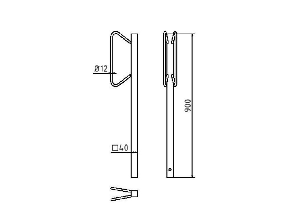 Čtvercový profil 40x40 mm s trubkovým obloukem o průměru 12 mm. Výška: 900 mm.