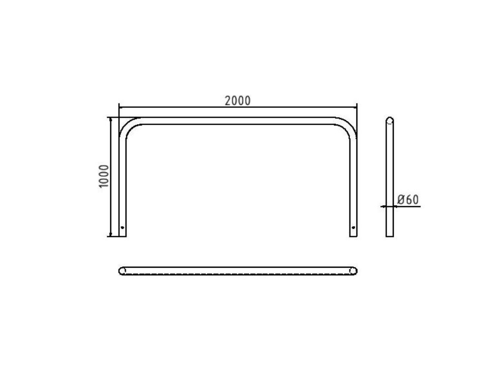 Průměr trubky 60 mm. Výška: 1000 mm. Šířka: 2000 mm. Pozinkované