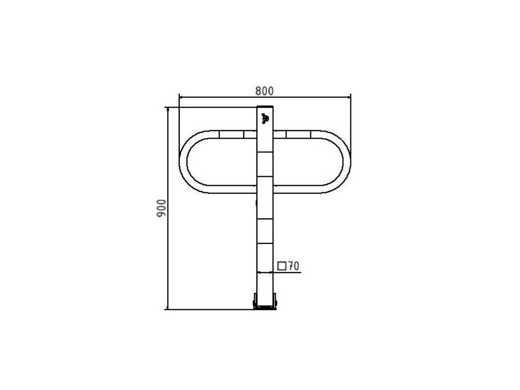 Parkovací zábrana ze čtvercového profilu 70 x 70 mm s kruhovými trubkovými obručemi po stranách.