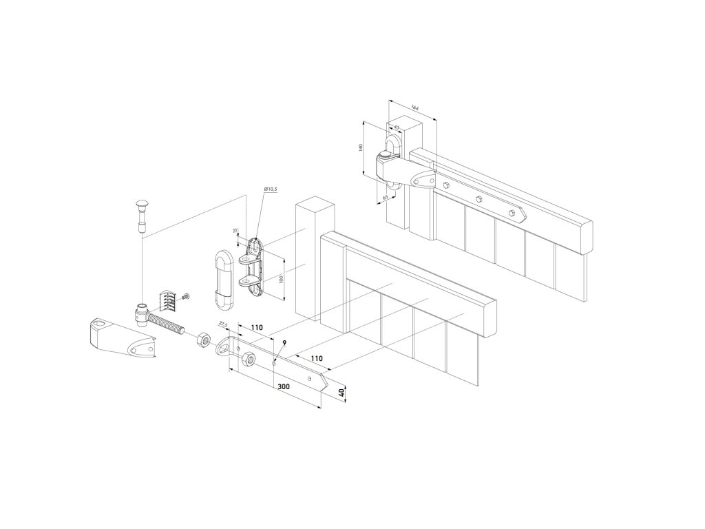 závěs 4D pro dřevěné dveře, vrata nebo brány s maximálním úhlem otevření 180° .