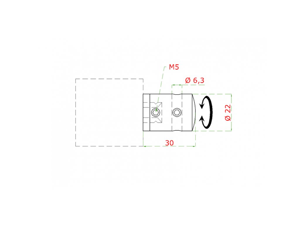 Držák lano z nerezové oceli ø5mm s aretací, plochý (30x22 mm). Držák je vyroben z broušené nerezové oceli K320 / AISI304.