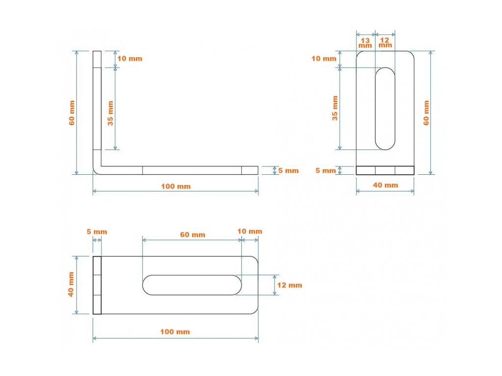 Boční vedení pro posuvné brány - samostatný úhelník L. Držák má možnost regulace (viz výkres). Je určen k přišroubování ke stěně, plotu nebo nivelační sloupek. Zapadají do úhlové konzoly role podle potřeby.