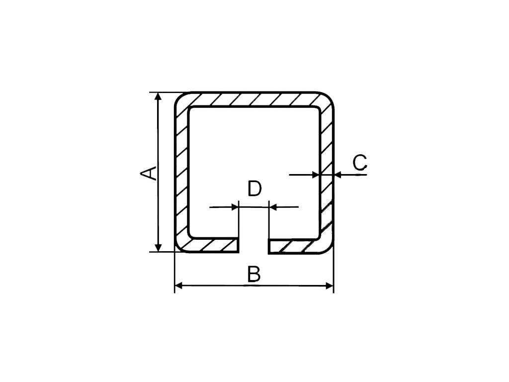 Silnostěnný nosný/vodicí C-profil o rozměrech průřezu 60 × 60 (š × v) a tloušťce stěny 4 mm se používá pro samonosné posuvné brány do 400 kg.