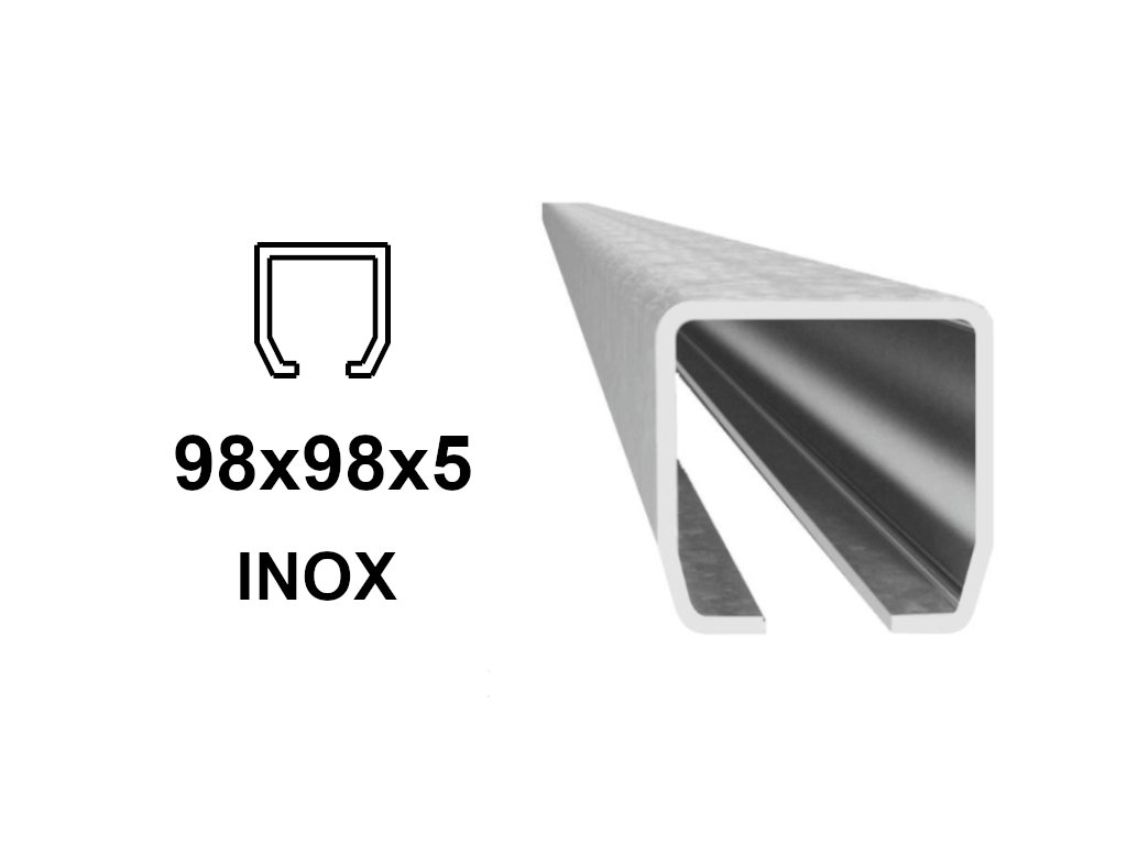 Vodicí C-profil 98x98x5mm pro samonosnou bránu, INOX. Délky: 3, 6 m.