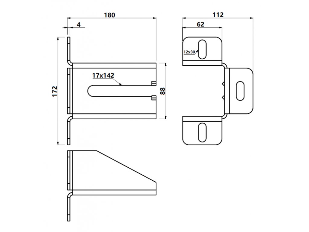 Konzola CAIS KHL180 určená k montáži závěsné brány, vhodná pro závěsné konzoly se závitovou tyčí velikosti M16. Držák je vyroben z pozinkované oceli a je přišroubován.