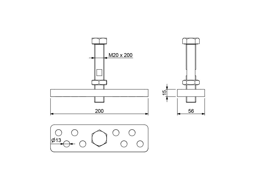 Horní držák CAIS GD200 slouží k připojení křídla brány nebo vrat k závěsnému vozíku. Držák má závit M20 a je vhodný pro vozík CAIS SPEED CM.