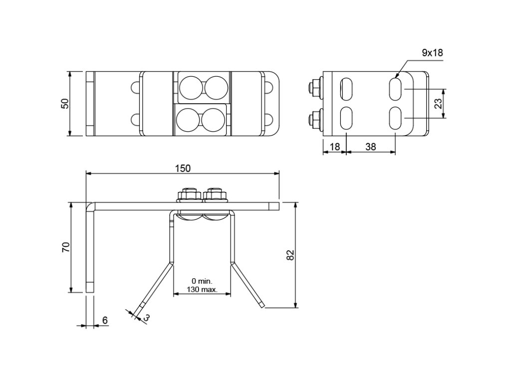 Dveřní zarážka s nastavitelnou šířkou až do 130 mm.