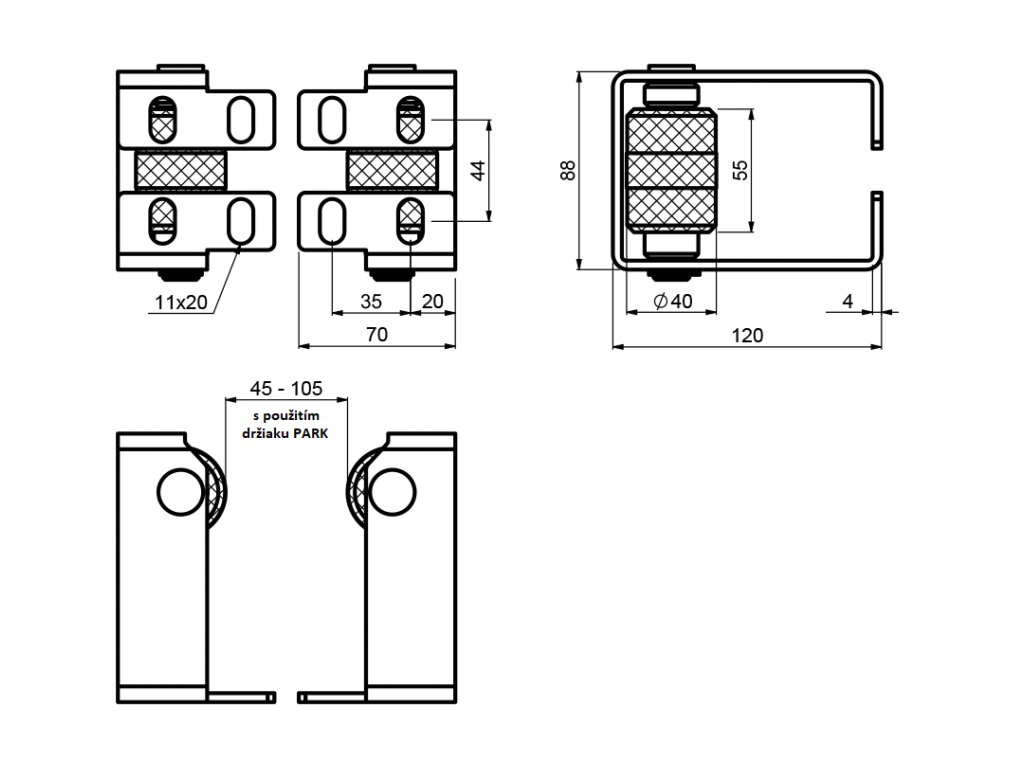 Rozpětí dorazu 45-105mm.