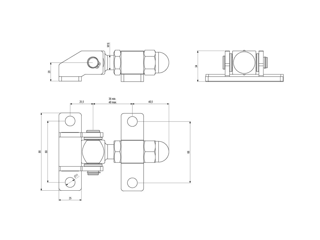 Nastavitelný závěs CAIS FOLD16 pro sešroubování s kontramaticí. Rozměr M16.