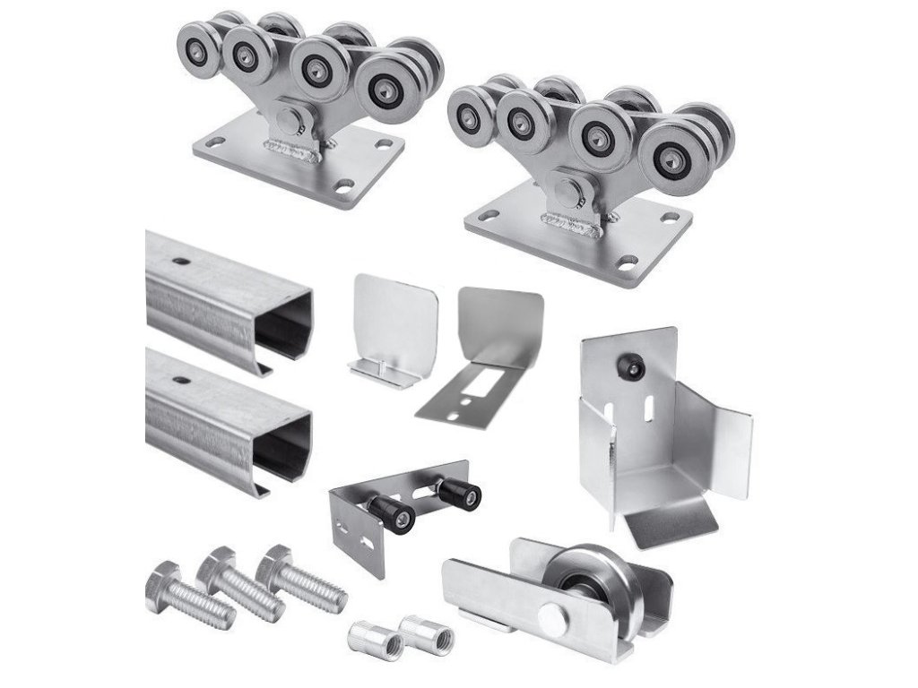 Sada součástí CAIS pro výrobu samonosné posuvné brány s šířkou průjezdu až 8 m/700 kg. Všechny komponenty sady jsou pozinkované.