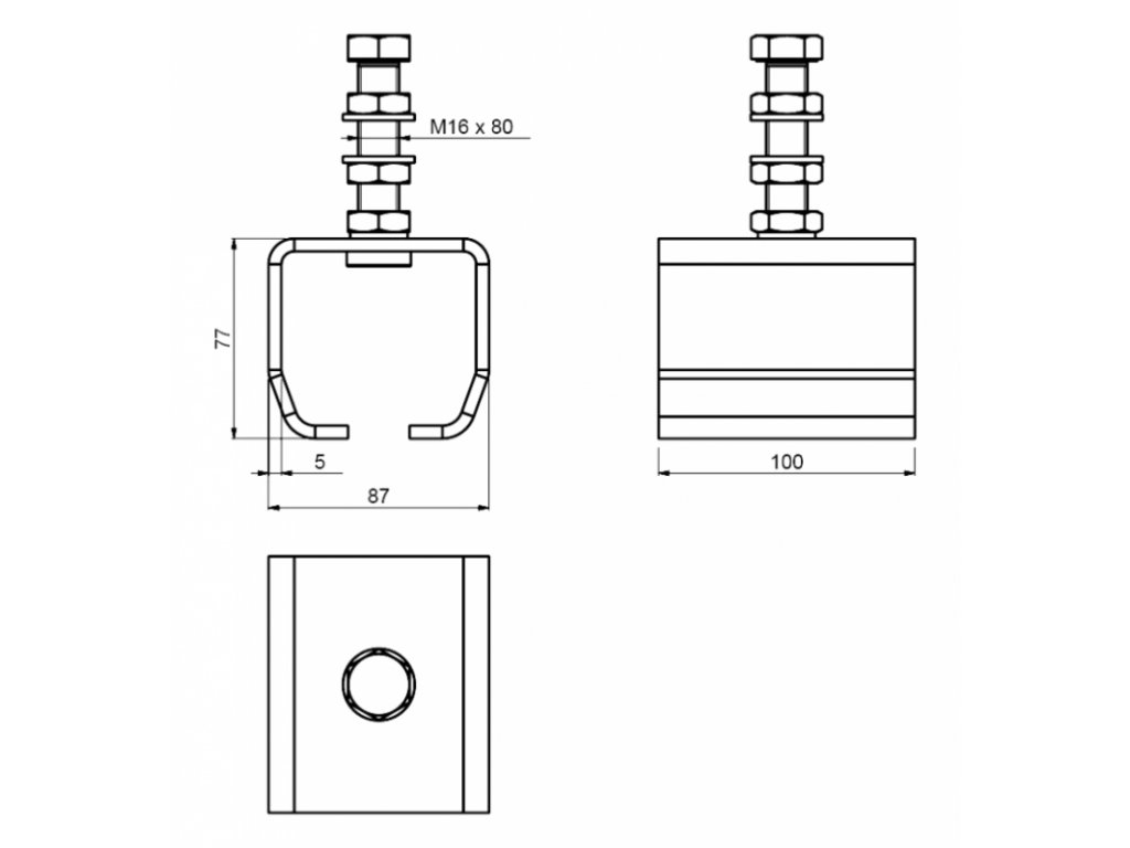 Závěsný držák CAIS DC70 vhodný pro vertikální montáž C-profilu 73x61x3,5mm, s nastavením výšky a ovládáním odskoku od stěny. Upevnění je pomocí závitové tyče M16 která je upevněna pomocí 140 cm dlouhý boční držáknebo boční držák o délce 180 cm.