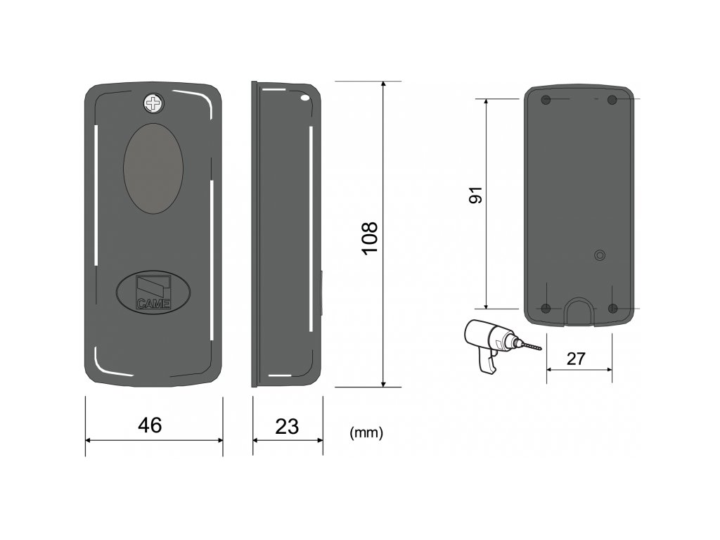 Rozměry | 46 × 26 × 108 mm (š × h × v) |