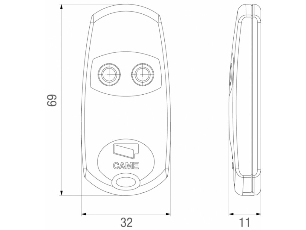 Dvoukanálový (tj. dvoutlačítkový) ovladač řady Top kompatibilní se všemi jednotkami s pevným kódem CAME a indikace vysílaného signálu pomocí červené LED diody. Pomocí tohoto ovladače můžete ovládejte dvě zařízení CAME nebo použijte přijímač CAME RE432 k ovládání zařízení jiné značky. Pokyny pro párování.