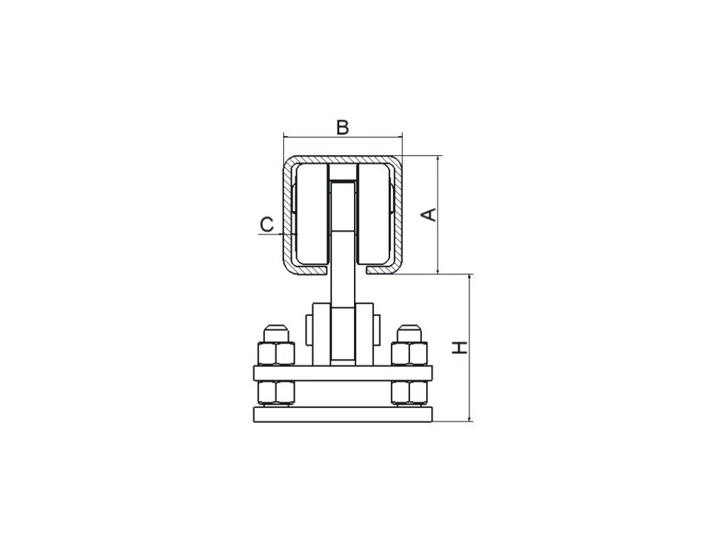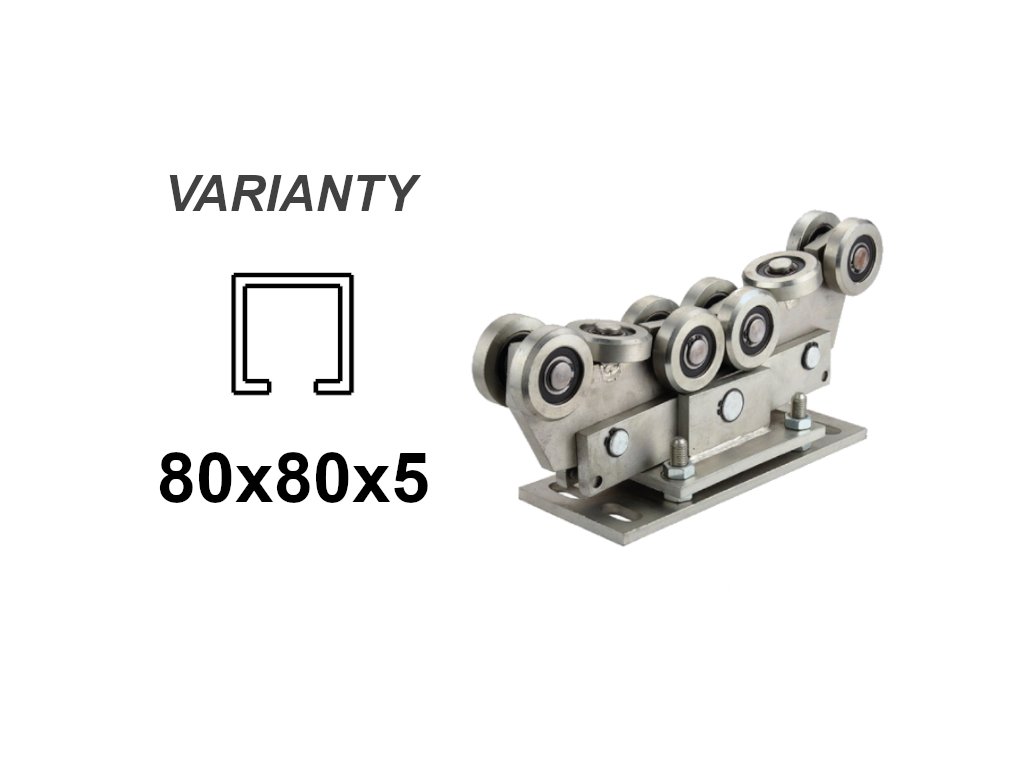 Celokovový kyvný vozík s regulací pro nadrozměrné posuvné brány. Vhodné pro brány s šířkou průjezdu od 7,5 m do 12 m. Lze jej použít i pro brány do šířky průjezdu 7,5 m, jejichž hmotnost přesahuje 600 kg. Vozík je dodáván s montážní deskou, která je součástí ceny.
