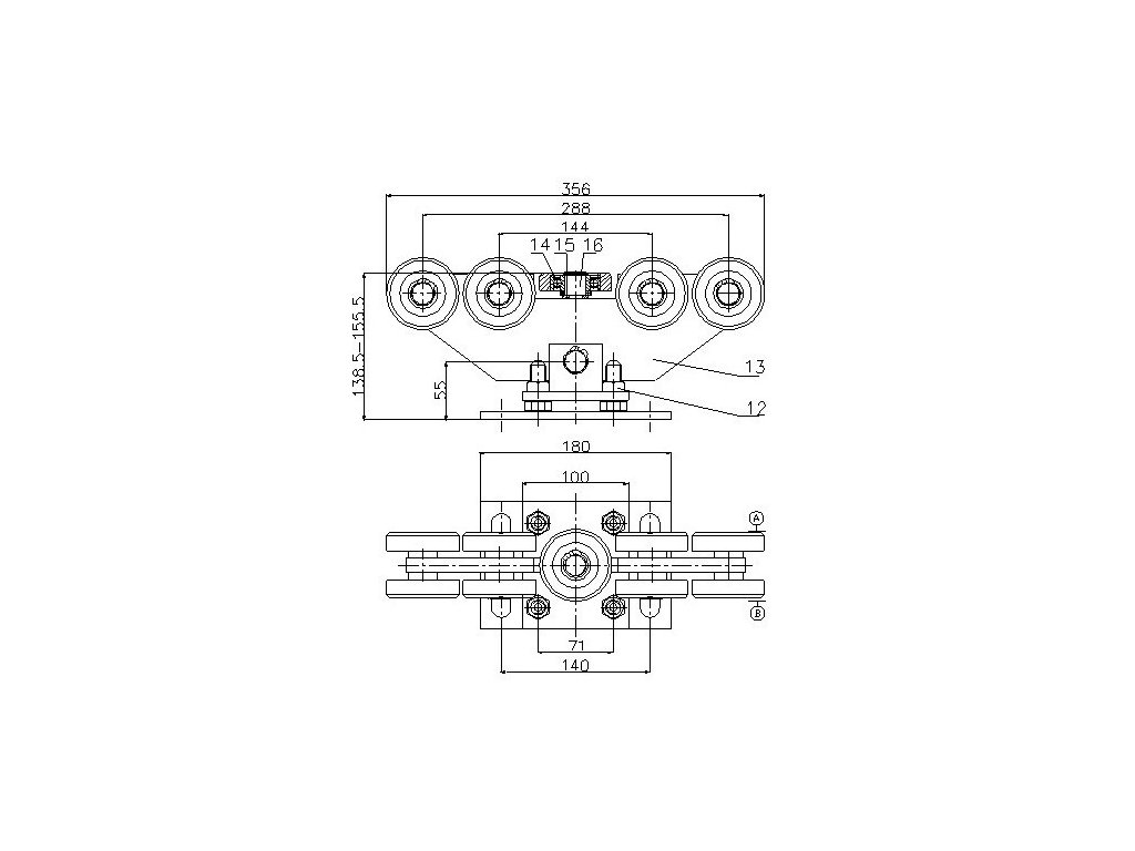 A[mm] | B[mm] | C[mm] | D[mm] | Celková délka vozíku včetně ložisek[mm] |