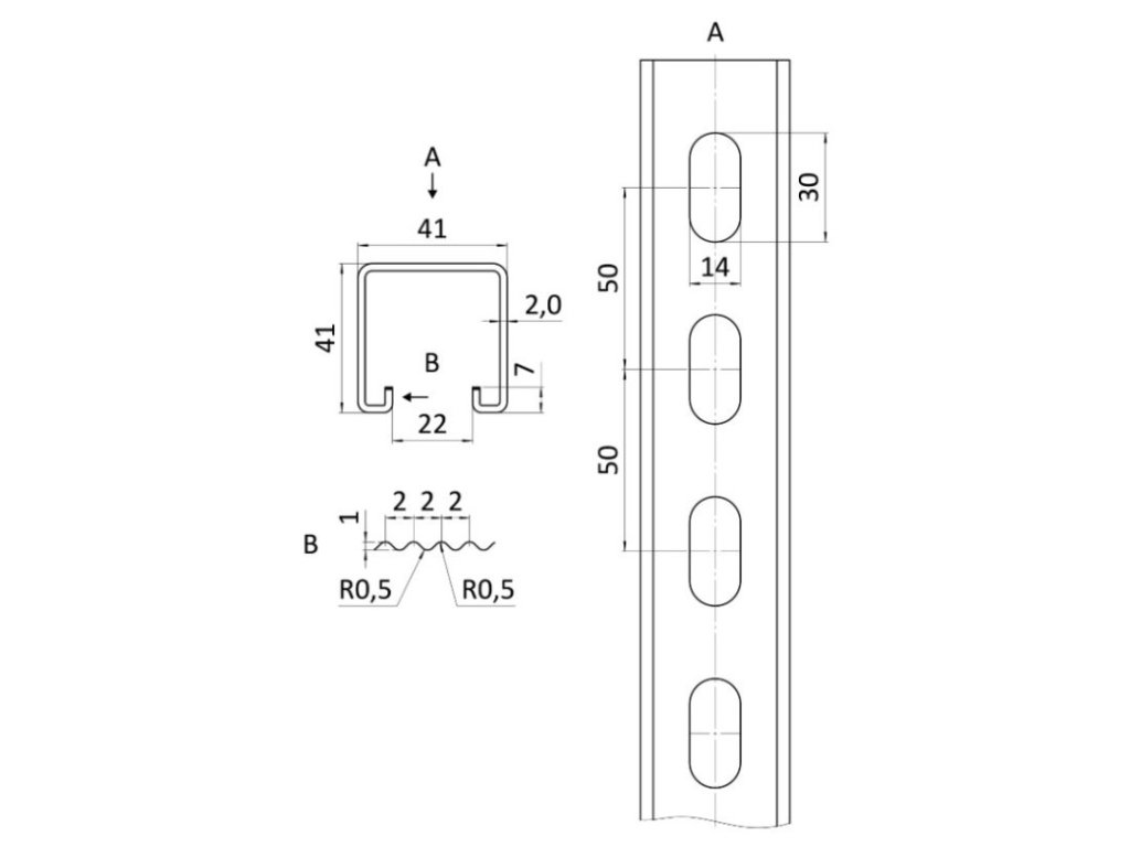 Děrovaný montážní C-profil 41x41x2, 3m, pozinkovaný