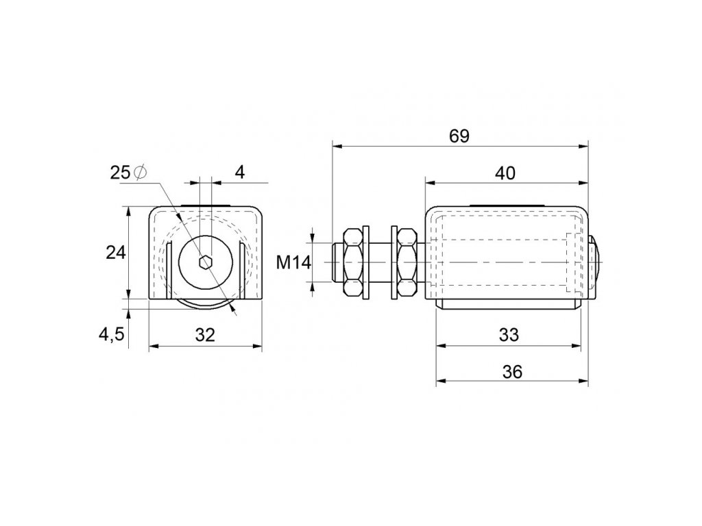 Nylonový váleček o průměru 25 mm se závitem M14 a ochranným krytem je vhodný pro pro horní linii posuvné brány.
