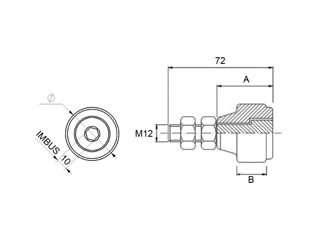 Plastový válec v různých velikostech: Ø25, Ø32, Ø34, Ø36, Ø41, Ø43. Pozinkovaný šroub M12.