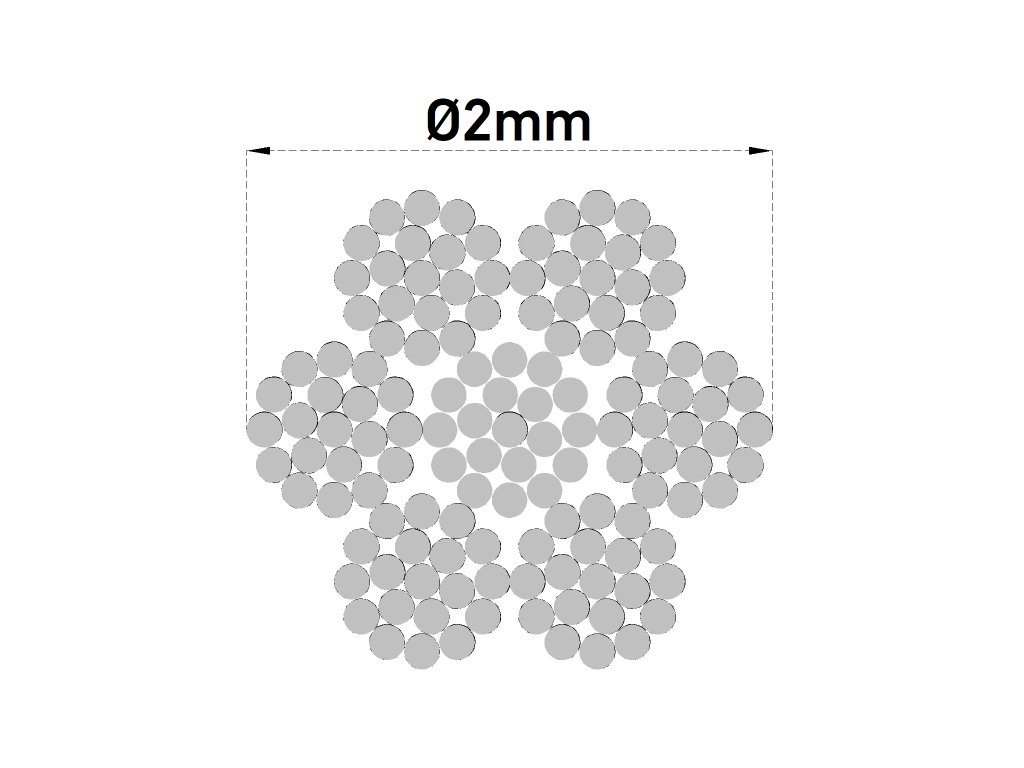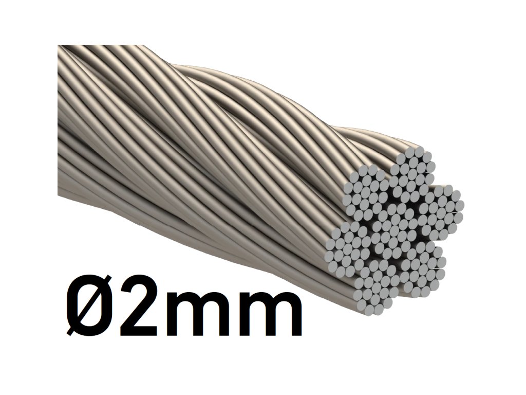 Ø2mm. 7x19 drátů. INOX AISI316.