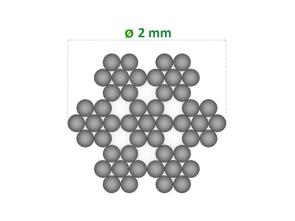 Ø2 mm. 7x7 drátů. INOX AISI316.