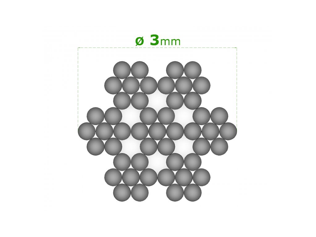 Ø3mm. 7x7 drátů. INOX AISI316.