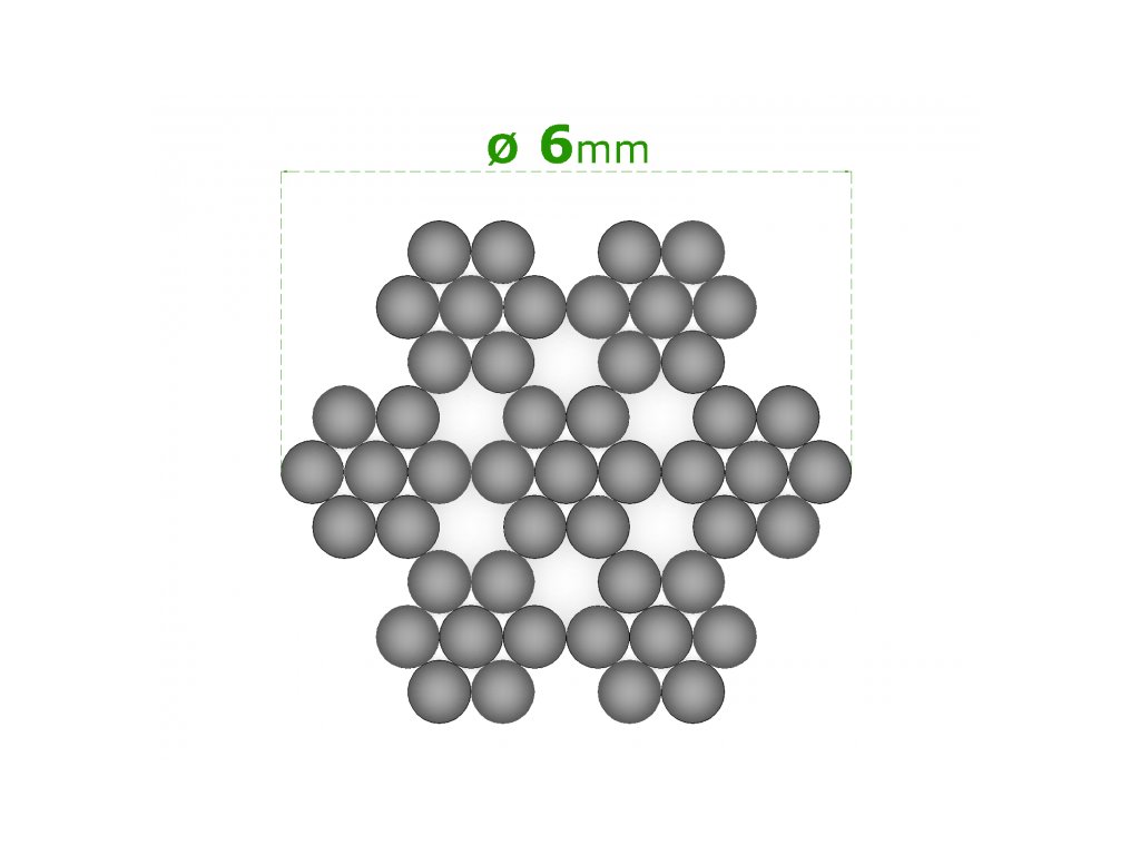 Drát z nerezové oceli Ø6mm, 7x7 drátů, INOX AISI316