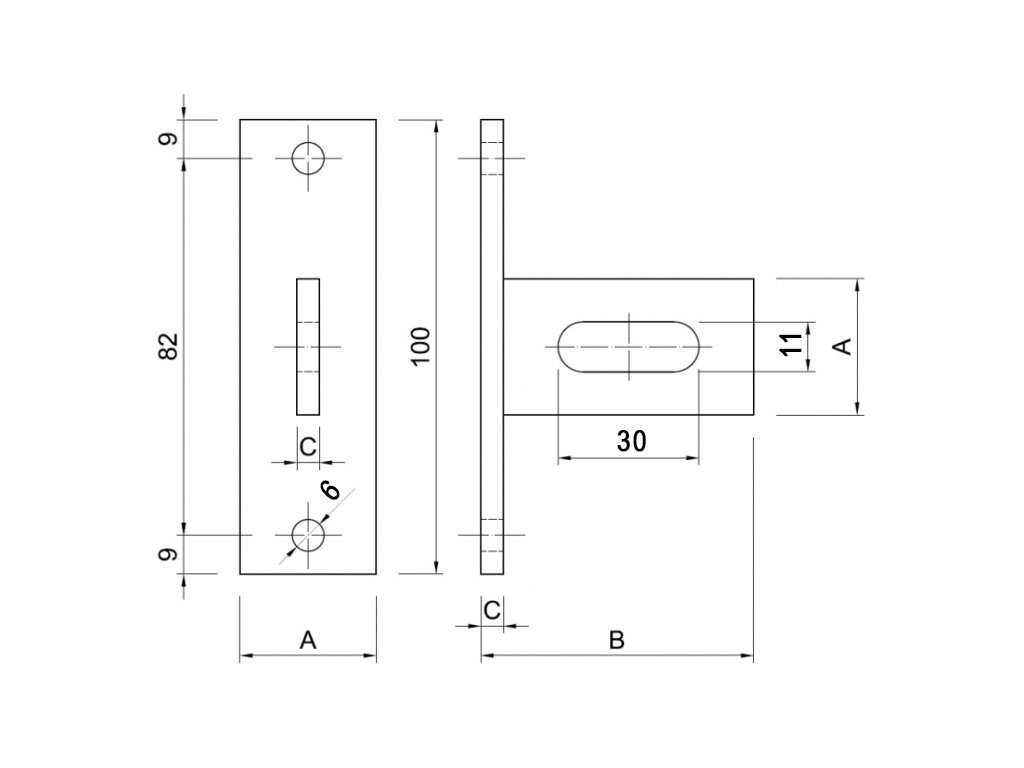Rozměry 30 × 60 × 5 a 40 × 60 × 5. Dodávaný držák + dva samořezné šrouby.