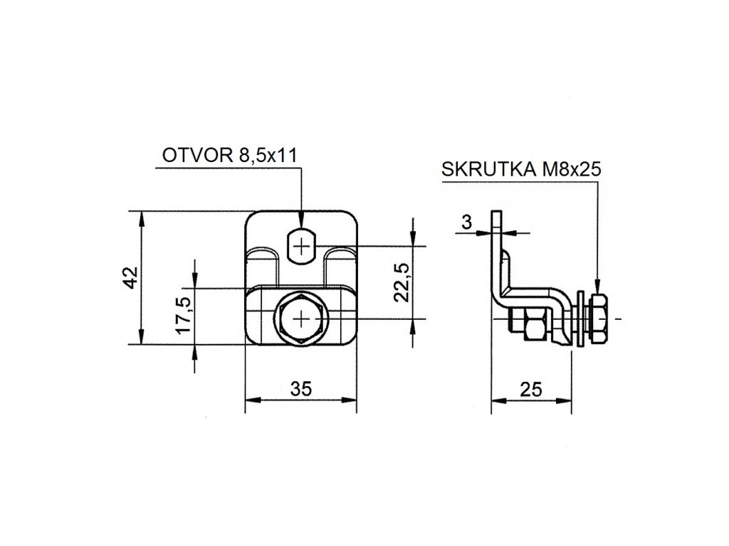 Držák pro kovový hřeben, M8x25mm, pro upevnění hřebene