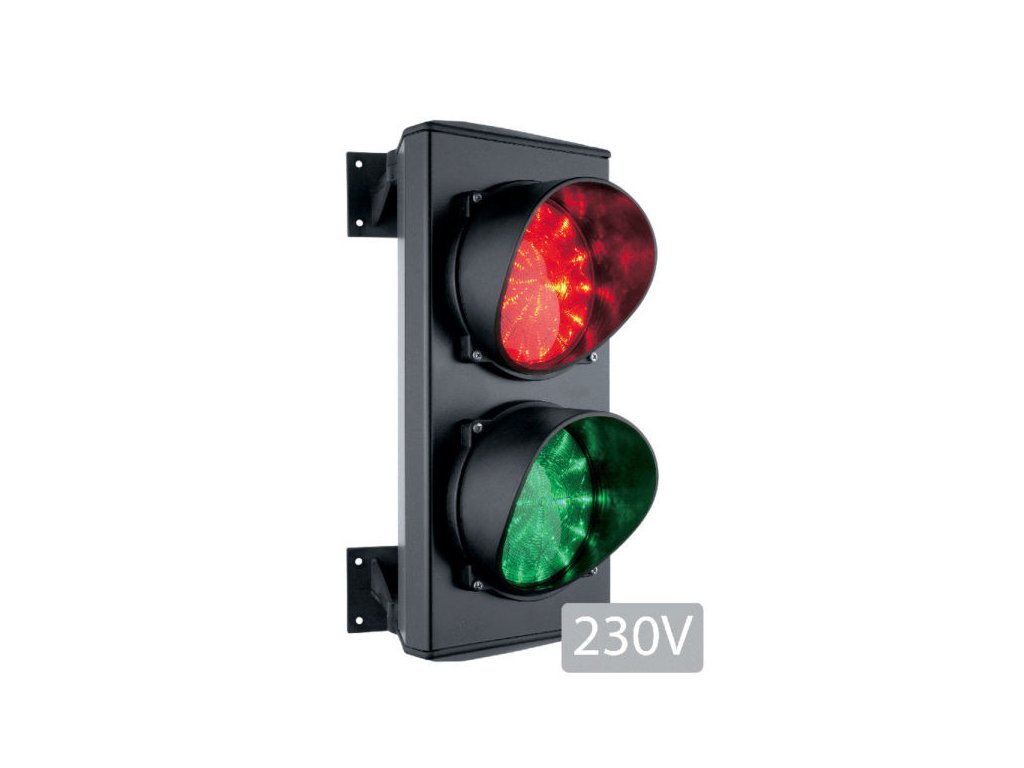Dvoukomorový semafor, zelený/červený, žárovka, 230 V, hliníkové tělo, IP65