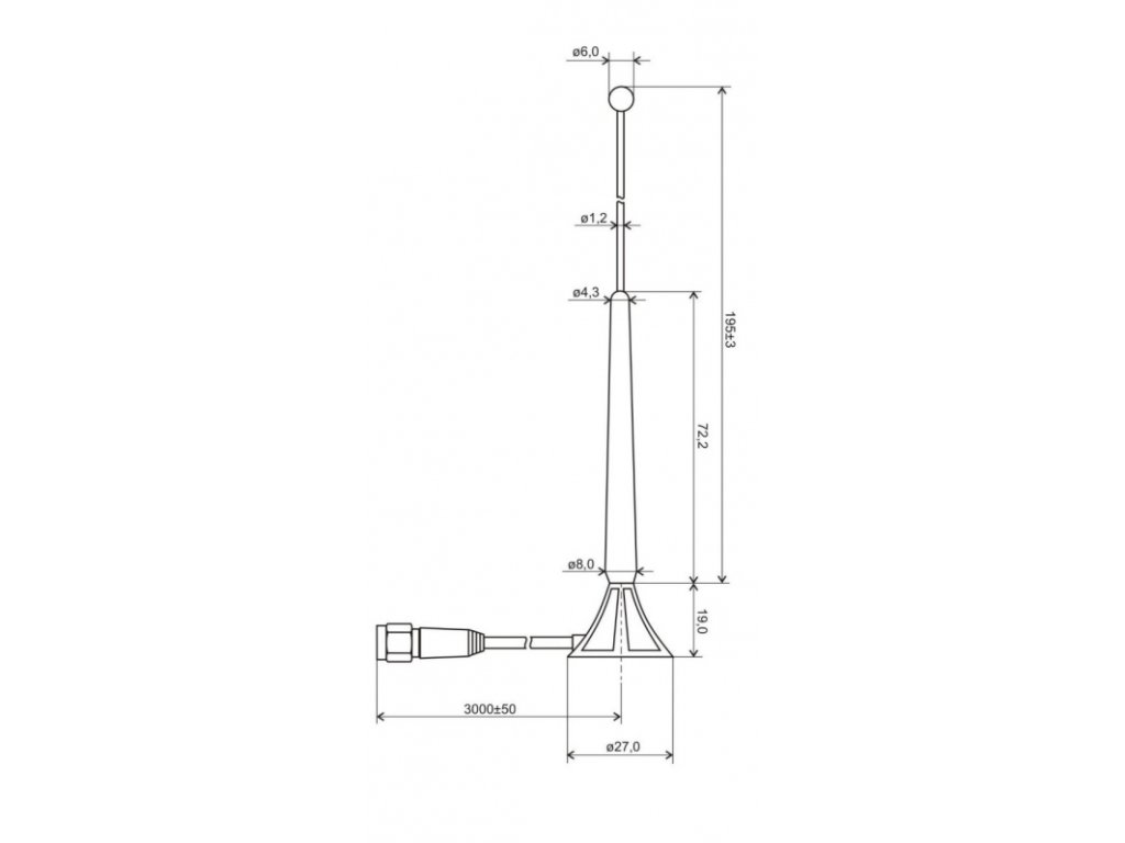 Externí anténa určená pro příjem signálu GSM a UMTS. Anténa pracuje v pásmech 900/1800/1900/2100 MHz. Dodává se s kabelem RG174/U 50 Ω o délce 3 m, zakončeným konektorem SMA(m).
