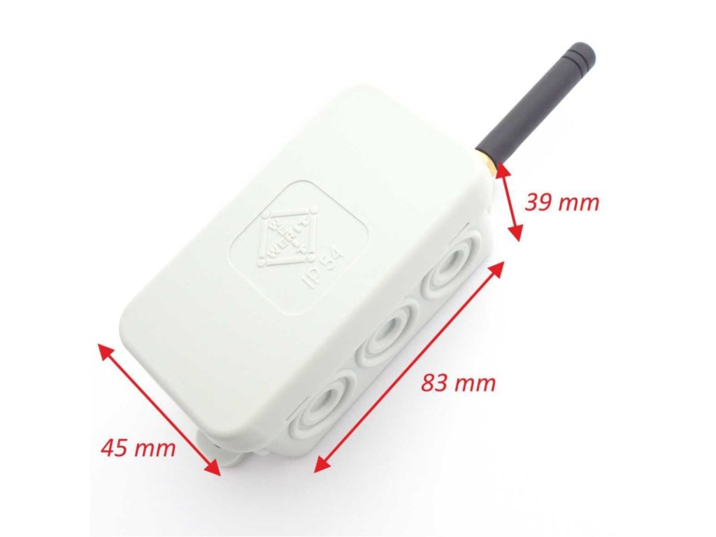 Ovládání zařízení mobilním telefonem. Je vybaven relé 250 V / 8 A.