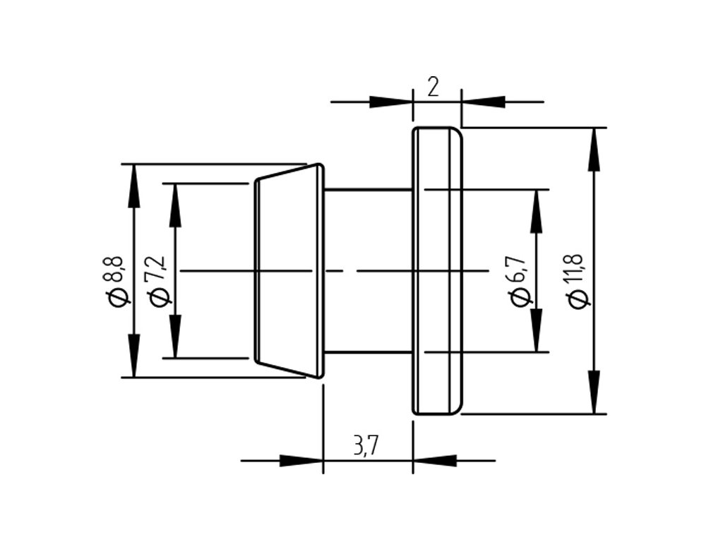 Gumová zarážka o průměru 11 mm. Zarážka je určena pro otvory o průměru 7 mm a upevňuje se zatlačením do samotného otvoru.