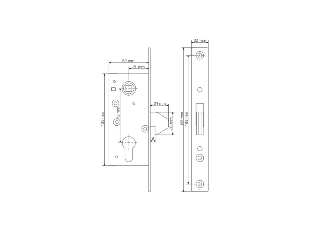 Lze vložit do profilu od rozměru 60 x 30 mm a více. Uzamčeno klasickým fab. Dodává se s protizávažím, jako na obrázku.