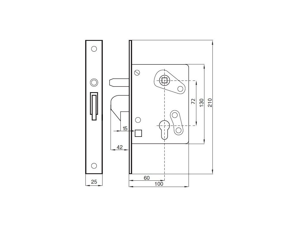 Hákový zámek pro profily od 100x30 mm s možností otevření brány pomocí kliky.