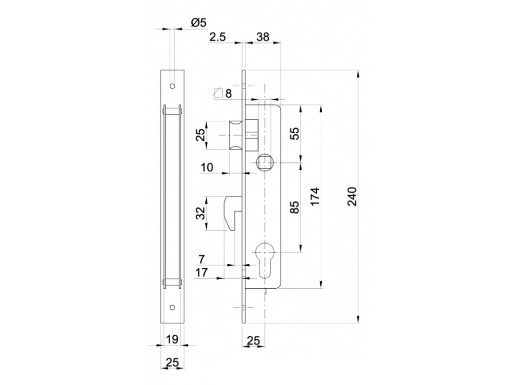 Hákový zámek pro posuvné / křídlové brány se zámkem, ZH-09, INOX