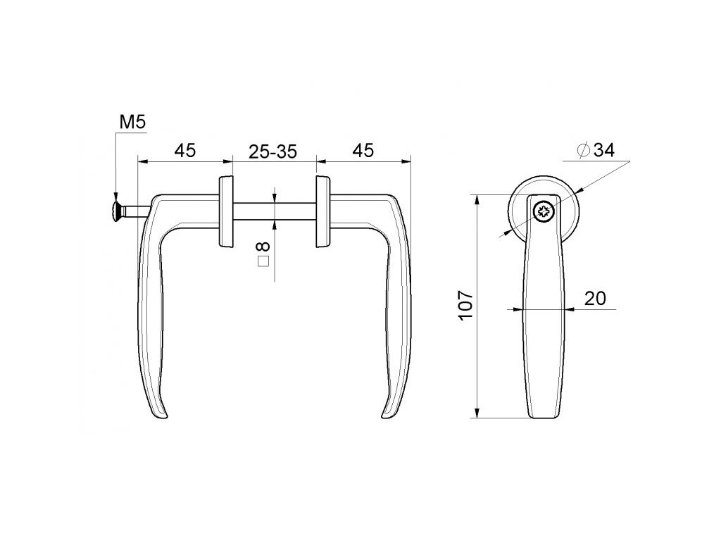 Hliníková rukojeť s černým práškovým nástřikem. Rukojeť se dodává v páru s klasickým vnitřním čtyřhranem 8x8 mm a upevňovacím šroubem.