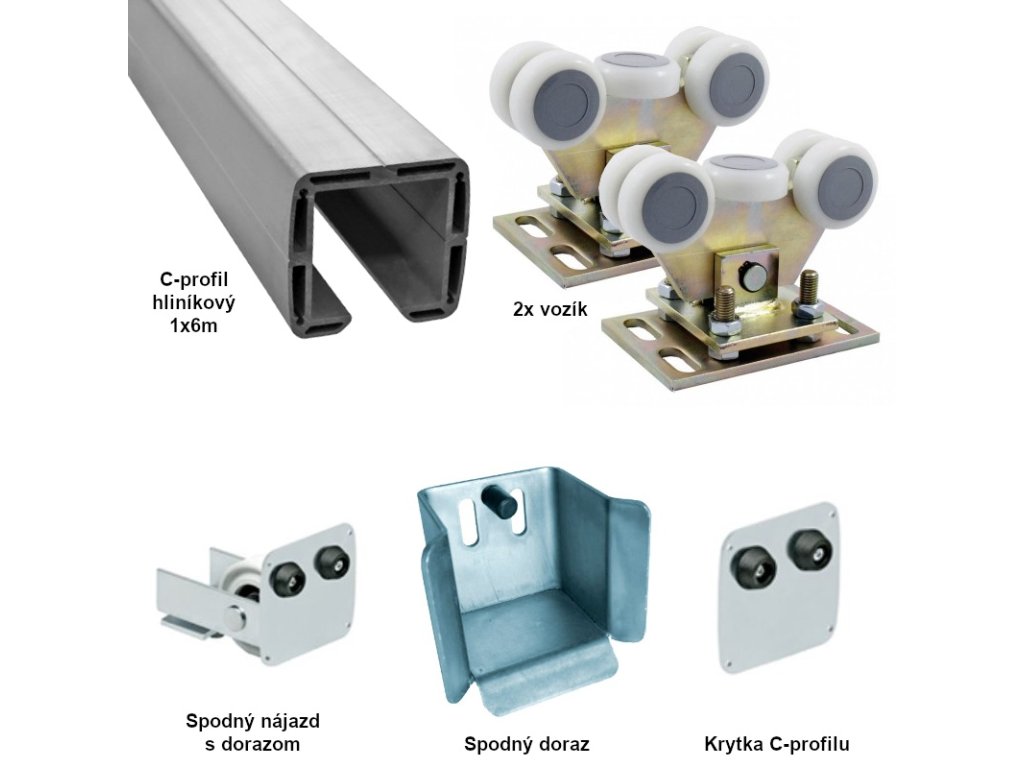 vozíky s 5 ložisky, nájezdem, dorazem, uzávěrem