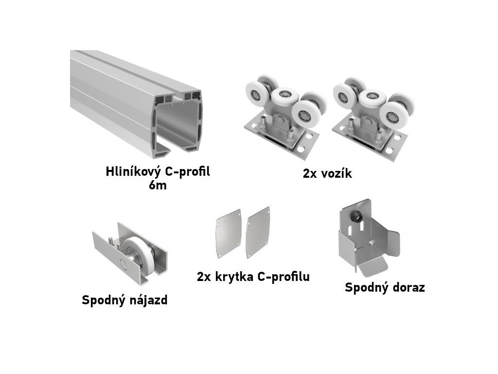 Hliníková sada pro posuvnou bránu až do šířky křížení 4 m.