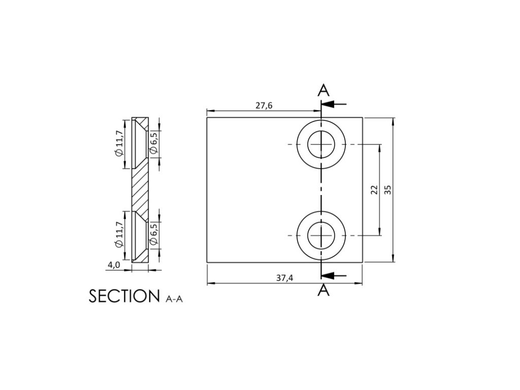 Hliníková krytka z přírodního hliníku určená k zakončení konstrukčního profilu o rozměrech 35x30mm, na kterém je instalována redukce pro 16mm profily. Krytka se upevňuje na profil jako zakončení lamelové výplně v profilu.