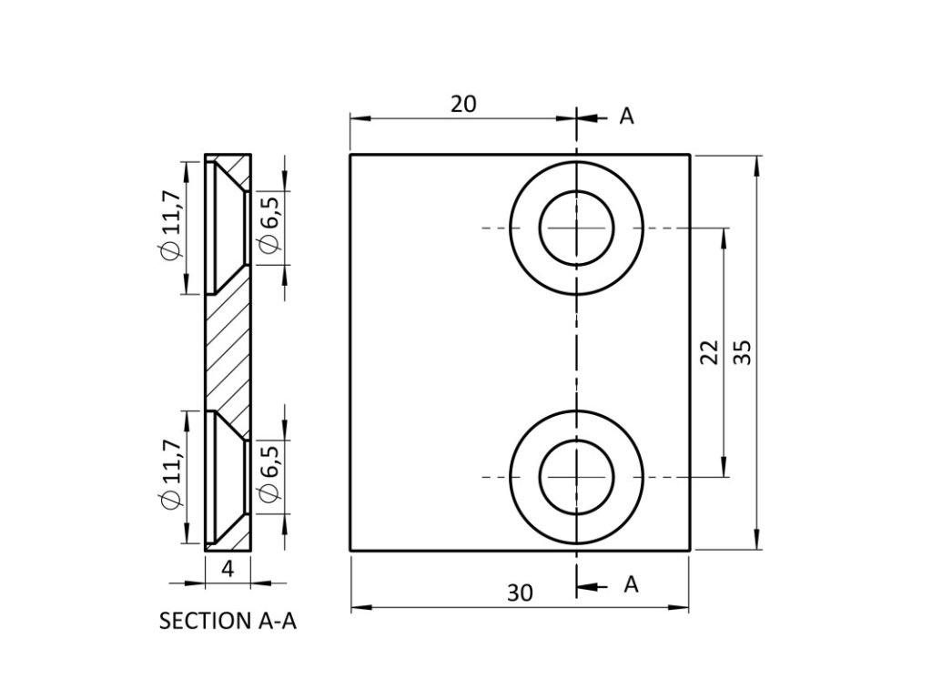 Hliníková krytka z přírodního hliníku určená k zakončení konstrukčního profilu o rozměrech 35x30mm. Krytka se upevňuje na profil jako zakončení lamelové výplně v profilu.