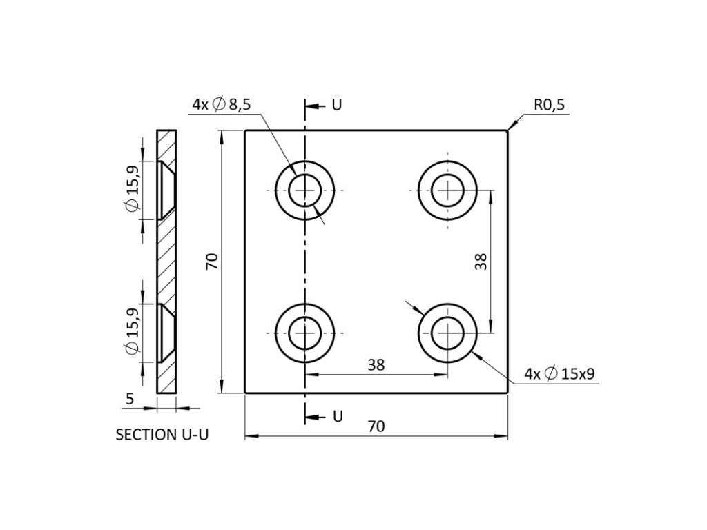 Hliníková krytka, s povrchovou úpravou antracit RAL7016 se strukturou, je určena k zakončení sloupkového profilu o rozměrech 70x70mm. Krytka se upevňuje na profil jako zakončení lamelové výplně ve sloupku.