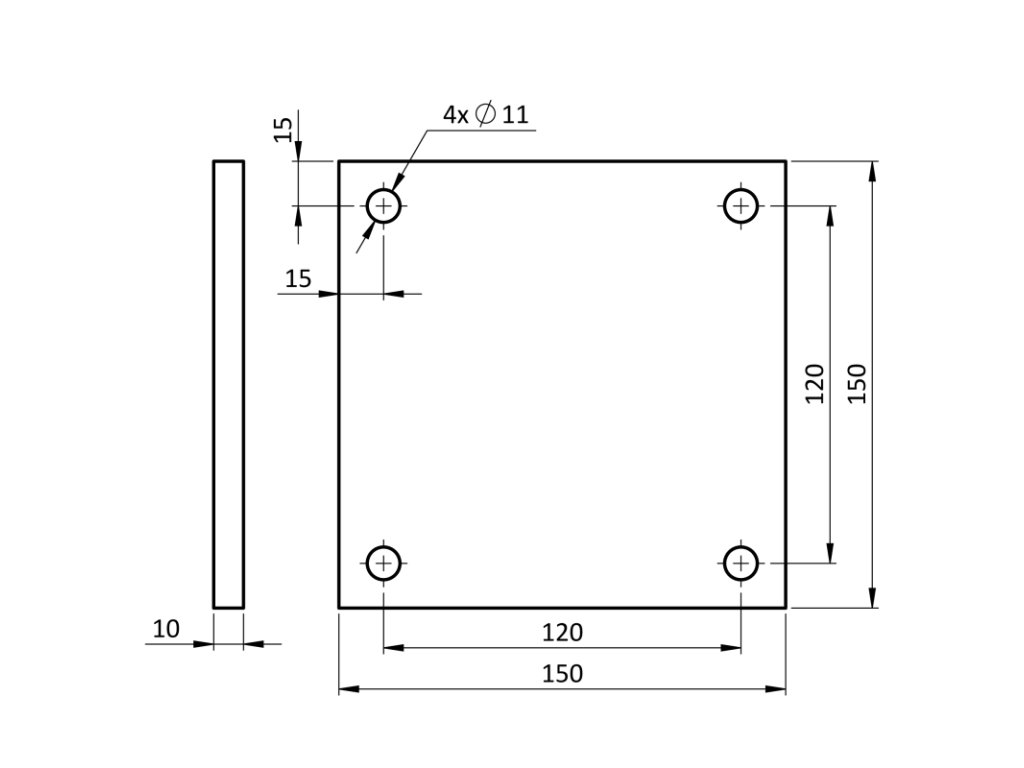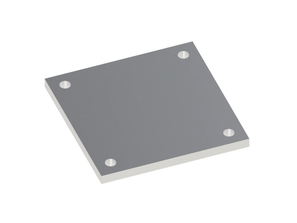 Hliníková patka čtvercového tvaru určená k ukončení hranolů, profilů a plotových sloupků o rozměrech 150x150 mm. Tloušťka patky je 10 mm.