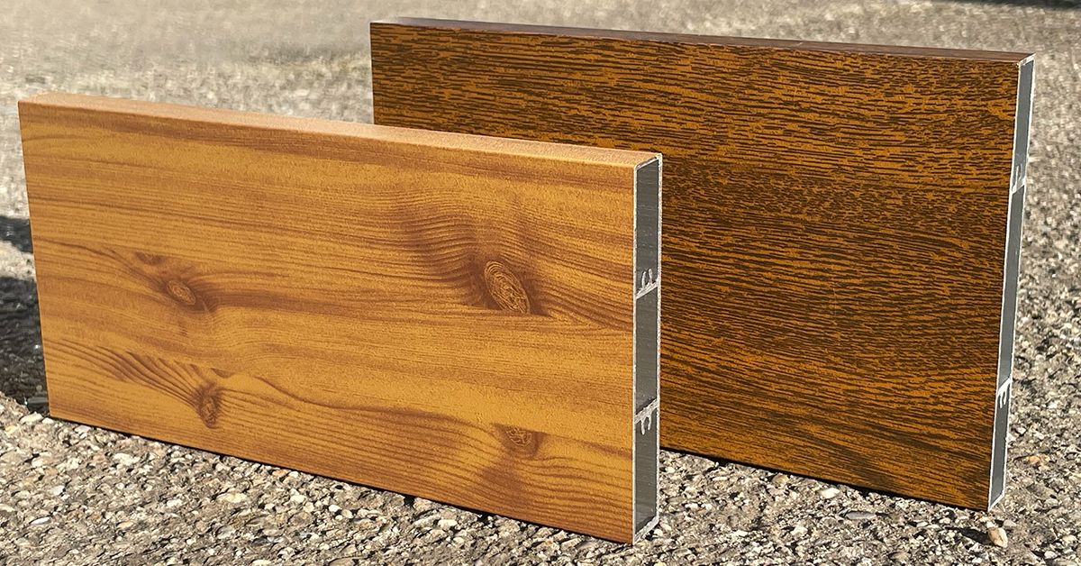 Hliník je odolný materiál s vysokou odolností vůči korozi, UV záření a povětrnostním vlivům. Lamela je vyrobena z hliníku EN AW-6060 T66 a dodávána v povrchové úpravě dřevo dekor se strukturou.