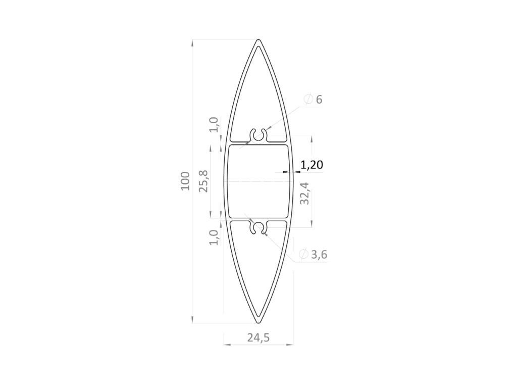Hliníkový profil pro plnění 100 mm × 24,5 mm