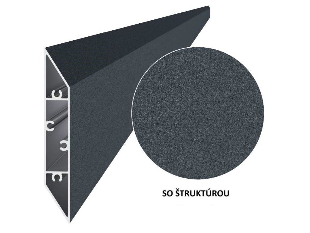 Profil je práškově lakovaný s texturovaným povrchem. Po nanesení se prášková barva dále vypaluje v peci. Matná termosetová prášková barva se používá k nástřiku certifikovaná polyesterová pryskyřice na bázi Qualicoat určené pro venkovní použití.