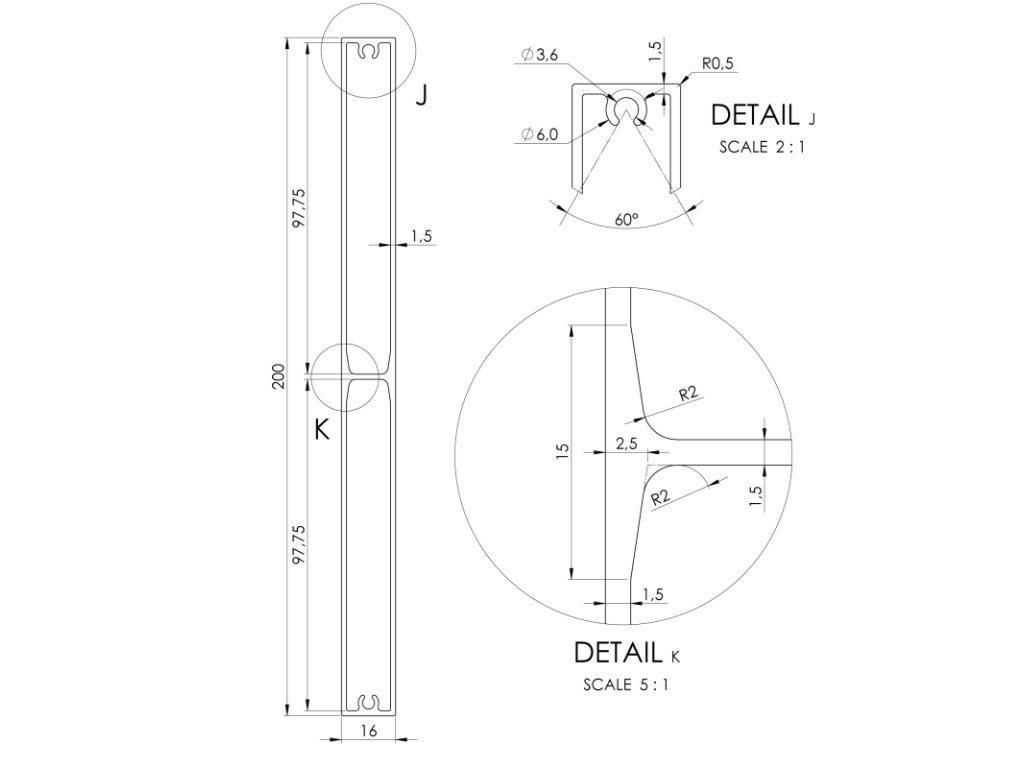 Hliníková lamela se strukturovanou antracitovou povrchovou úpravou v odstínu RAL 7016 dobře odolává korozi a povětrnostním podmínkám. Její dutá konstrukce snižuje celkovou hmotnost, čímž usnadňuje manipulaci a montáž, zároveň odlehčuje celou sestavu, například při použití v posuvných bránách. Může být použita jako výplň plotu, brány nebo jakéhokoli jiného prostoru. Lamela má tvar obdélníku s výškou 200 mm, šířkou 16 mm a dodává se v délce 2 m, 3 m nebo 6 m.