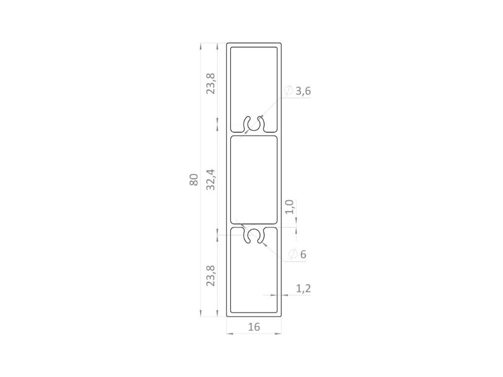 Hliníkový profil pro plnění 80 mm × 16 mm