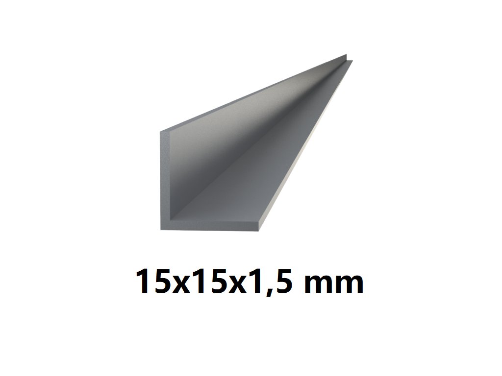 Obdélníkový profil z přírodního hliníku bez povrchové úpravy o rozměrech 15x15 mm a tloušťce 1,5 mm.